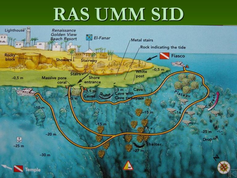 Ras Umm Sid dive site in Sharm El Sheikh offers abundant marine life, including schools of Barracudas are characteristics of this dive site. The site has a wall reaching from the surface to 18m, forming a plateau that extends for about 50m to the drop off. On the plateau divers find pinnacles with Scorpion Fish camouflaged in the coral and Bat Fish hovering.